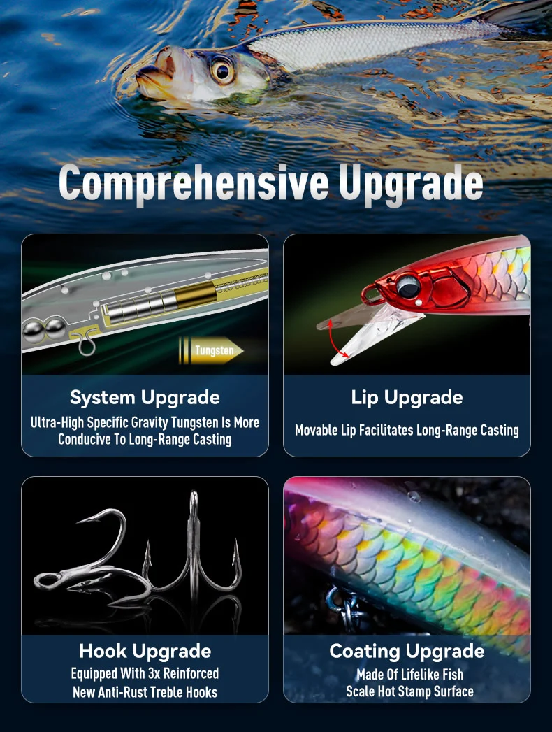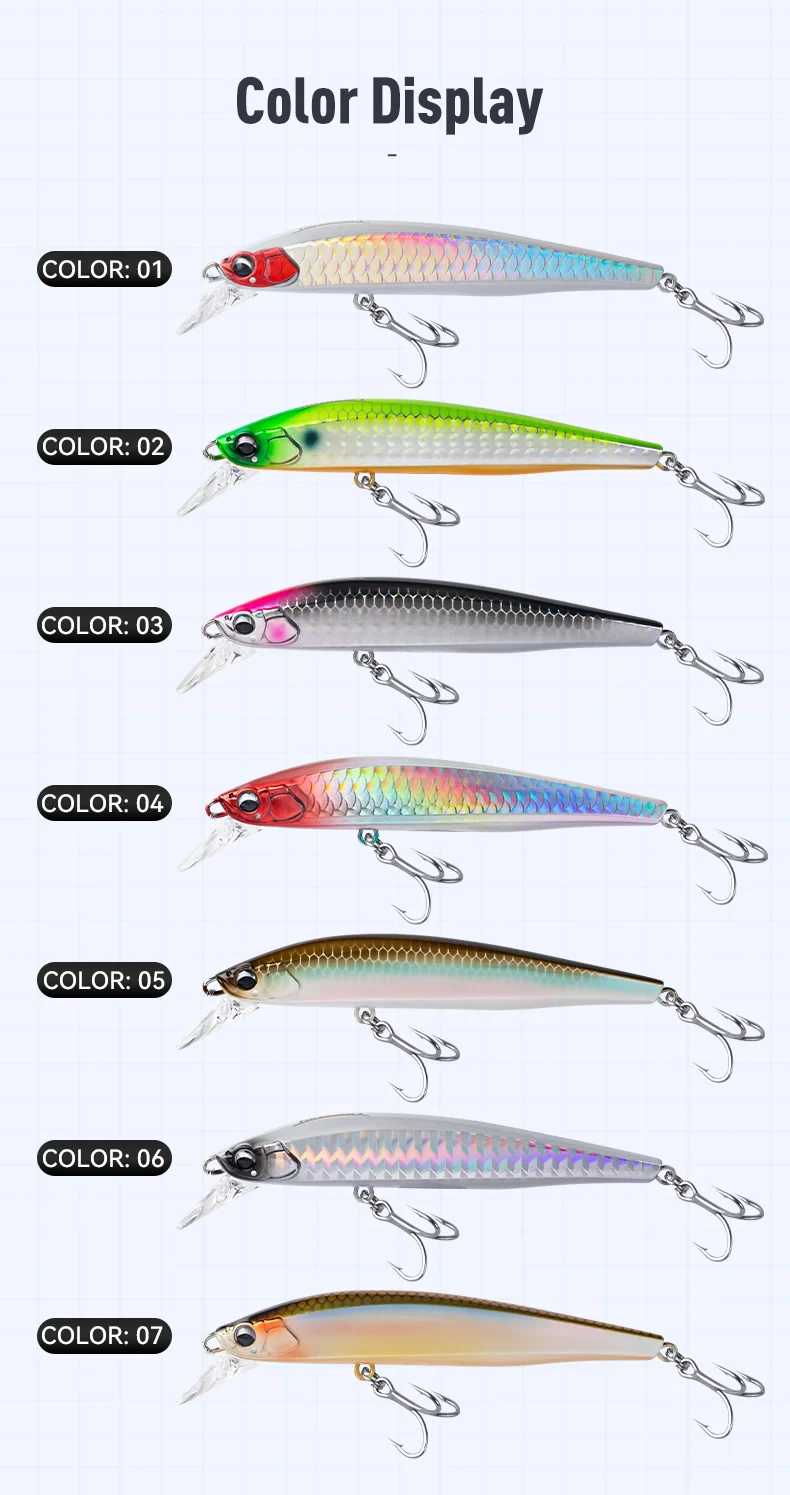 7.5g to 18g,Available in weights from 7.5g to 18g, ensuring optimal casting and retrieval for diverse fishing conditions.