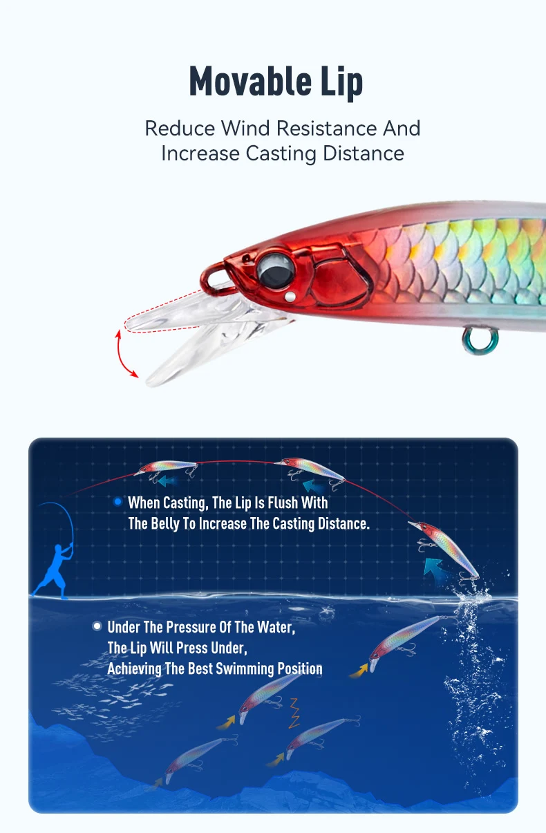 New ABS Material,Crafted from durable New ABS Material, this lure withstands rigorous ocean and freshwater fishing.