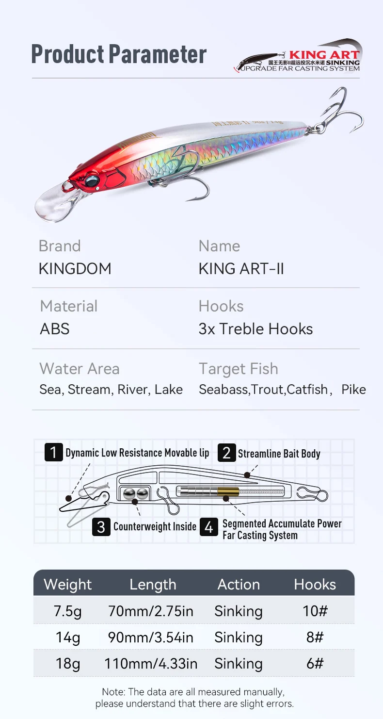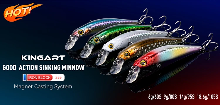 Kingdom Artificial Sinking Minnow Fishing Lure 7.5g 14g 18g 70mm 90mm 110mm Jerkbaits Hard Bait Sea Bass Fishing Tackles
