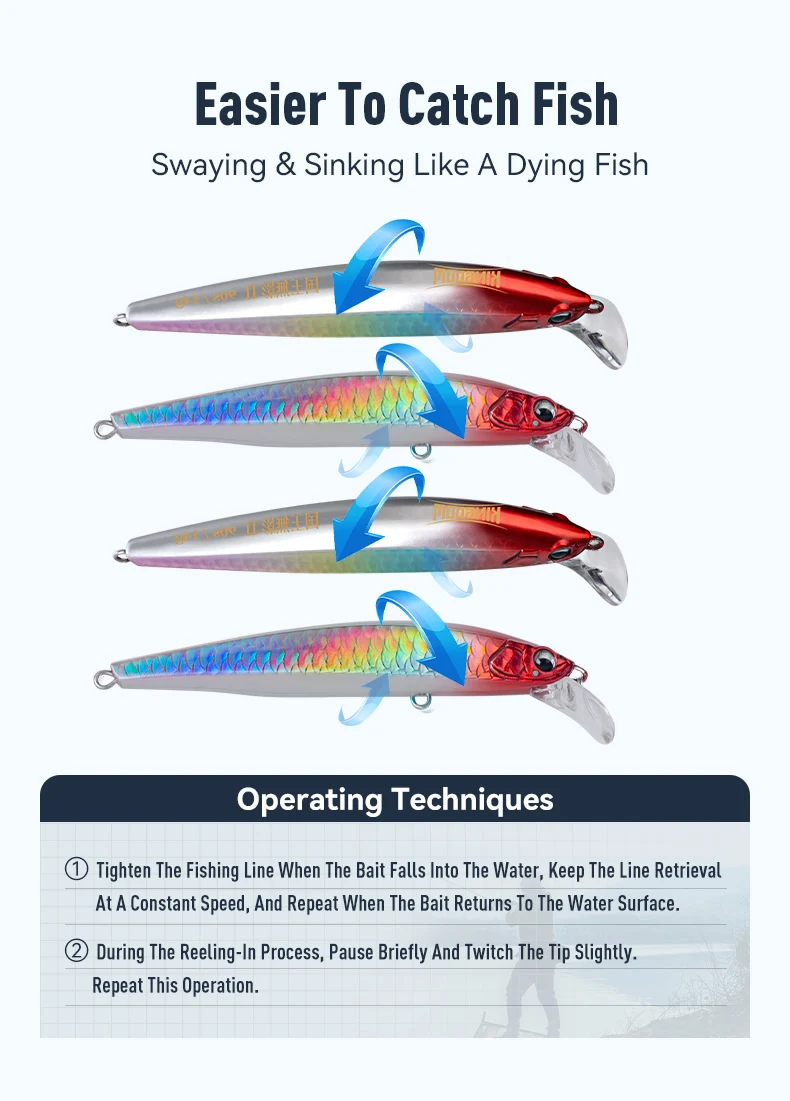 Sinking,The sinking action of this lure mimics natural prey, increasing the chances of a successful catch.